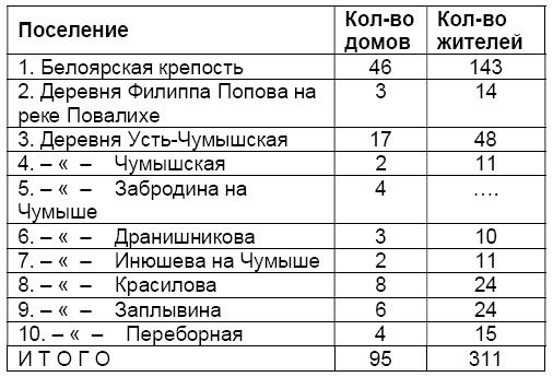Кстати, до места назначения прибыли не все – с дороги (а это полторы сотни вёрст) сбежали кузнецкие служилые люди А. Сысмин, И. Недорезов, казачьи дети М. Трошков, И. Вызов, В. Кречетов, И. Барабанов, А. Щеняев, а также «выезжие» телеуты Бехтень Шадыбодоев, Ч. Меогошев, Т. Боянов, И. Кочконаков.