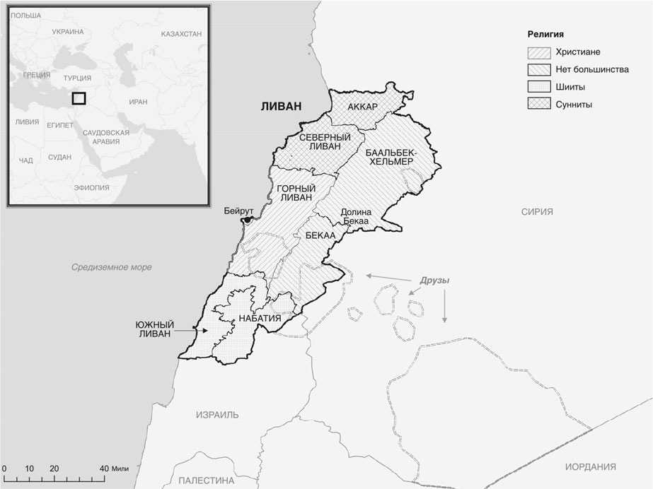 До Первой мировой войны Ливан входил в Османскую империю, а затем, после недолгого французского колониального правления, в 1943 году стал независимым государством. С момента провозглашения независимости в Ливане ни разу не проводилась перепись. Первая и последняя перепись прошла в 1932 году, и она послужила основой для принятого в 1943-м «Национального пакта». Согласно этой переписи, христиане составляли 51 % населения – немного больше, чем общины шиитов, суннитов и друзов, вместе взятые (распределение конфессиональных общин показано на карте 3).