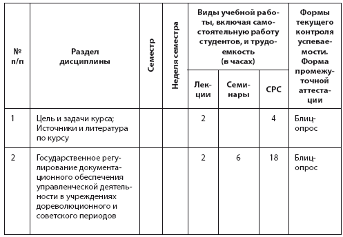 Тема: Государственное регулирование документационного обеспечения управленческой деятельности в учреждениях дореволюционного и советского периодов – 6 часов.