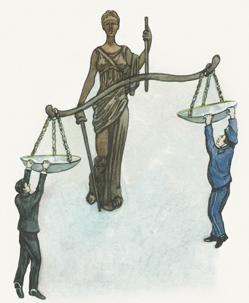 Равновесие сил в суде. Доводы сторон на весах богини правосудия Фемиды
