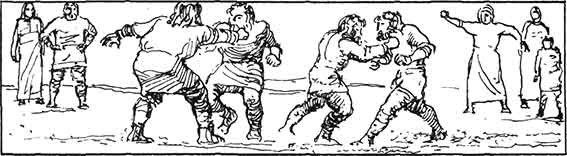 Пока корабль причаливал и люди Торбьёрна спустили парус, к берегу верхом на лошади приблизился могучий старик. Все лицо его заросло кудрявыми рыжими волосами и бородой. За ним бежал мальчик лет семи, тоже рыжий. Внизу у воды стояли дети и несколько молодых людей с серпами и лопатами. Вокруг них крутилась большая собака, неугомонно тявкая и виляя хвостом всякий раз, когда ей отвечал дружный лай на борту корабля.
