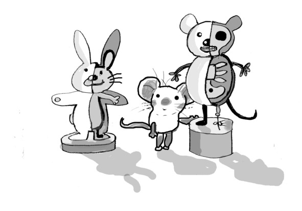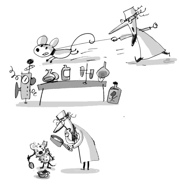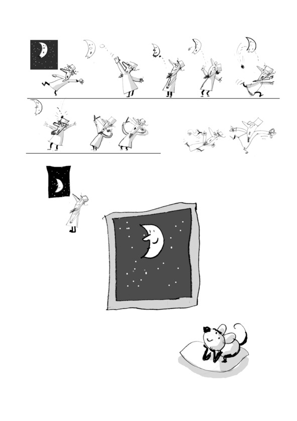 ПРОФЕССОР запуливает камень обратно, в направлении луны – как можно выше. Камень со свистом улетает. ПИНЯ может вздохнуть спокойно, он свободен. Мышонок мирно спит на своей подстилке.