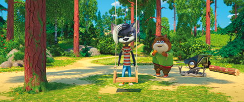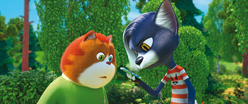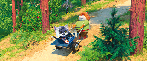 Тем временем в округе не только Барбоскины наслаждались чудесным тёплым днём. Пара местных ребят каталась в тачке с пригорка. Заводилой был юркий серый кот, который всё время подгонял друга. В результате они так разогнались, что тачка слетела с горки и свалилась в воду.