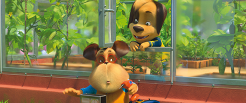 Гене пришлось его заверить, что прямо сейчас приступит к работе над суперфлайером. Изобретатель собрал все детали в рюкзак и заперся в сарае, однако не прошло и минуты, как рядом снова появился Дружок. Тогда Гена спрятался за теплицей, но братец нашёл его и тут. Отчаявшись, Гена полез на крышу, осмотрелся, открыл рюкзак – и оттуда высунулся Дружок! Тот заявил, что выкинул изобретение брата.