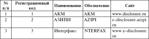 На сегодняшний день таких уполномоченных информационных агентств пять. Их перечень представлен в табл.:
