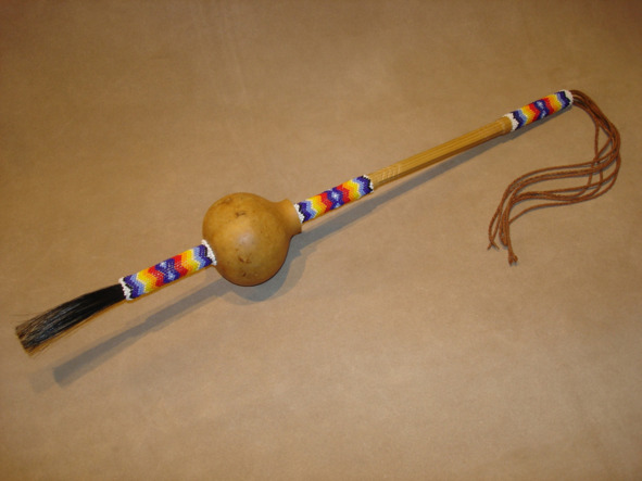 Погремушка из высушенной тыквы, регалия культа Пейота Церкви Коренных Американцев. Равнины.
