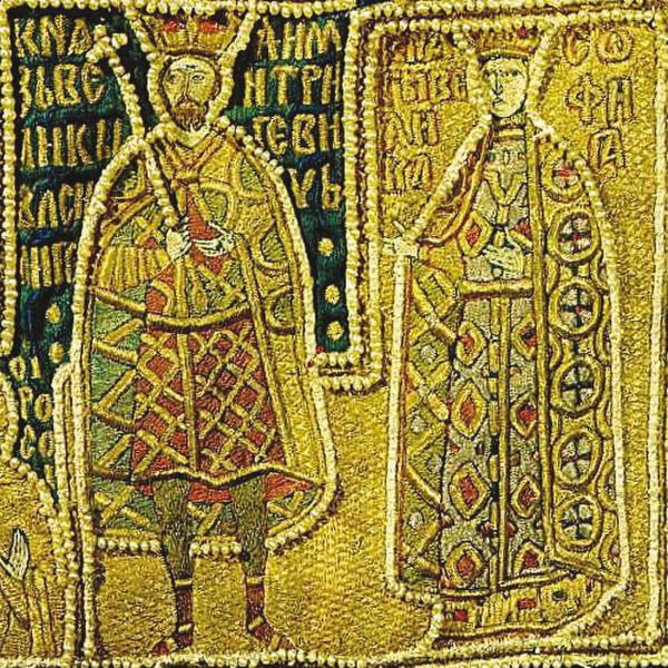 Рис. 6. Изображение Василия I и Софьи Витовтовны на большом саккосе митрополита Фотия (нач. XVв).