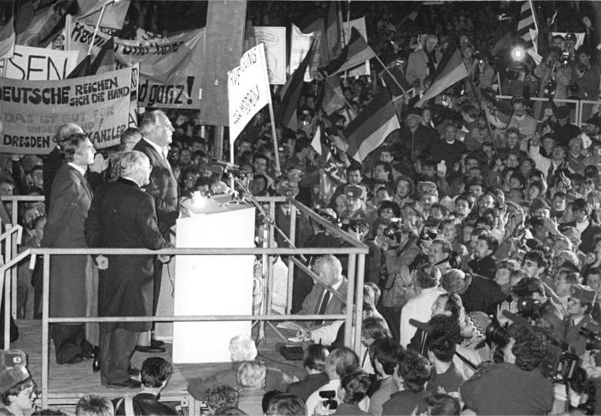 19. Dezember 1989: Bundeskanzler Helmut Kohl wendet sich vor der Ruine der Frauenkirche an Tausende Dresdner.