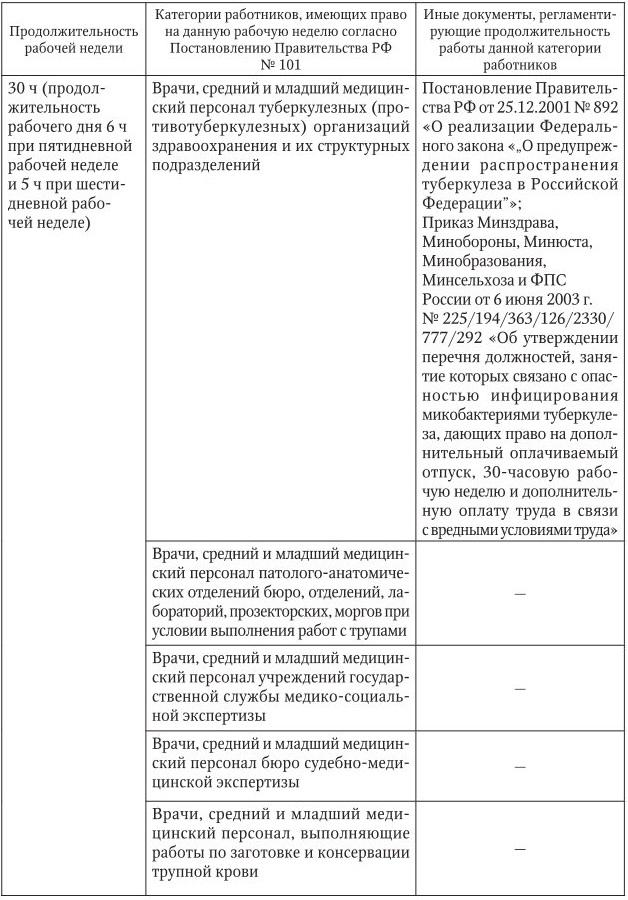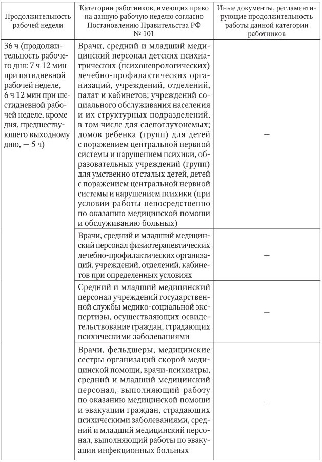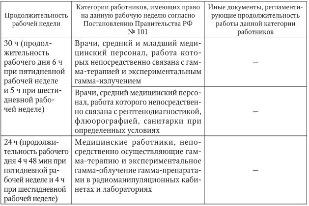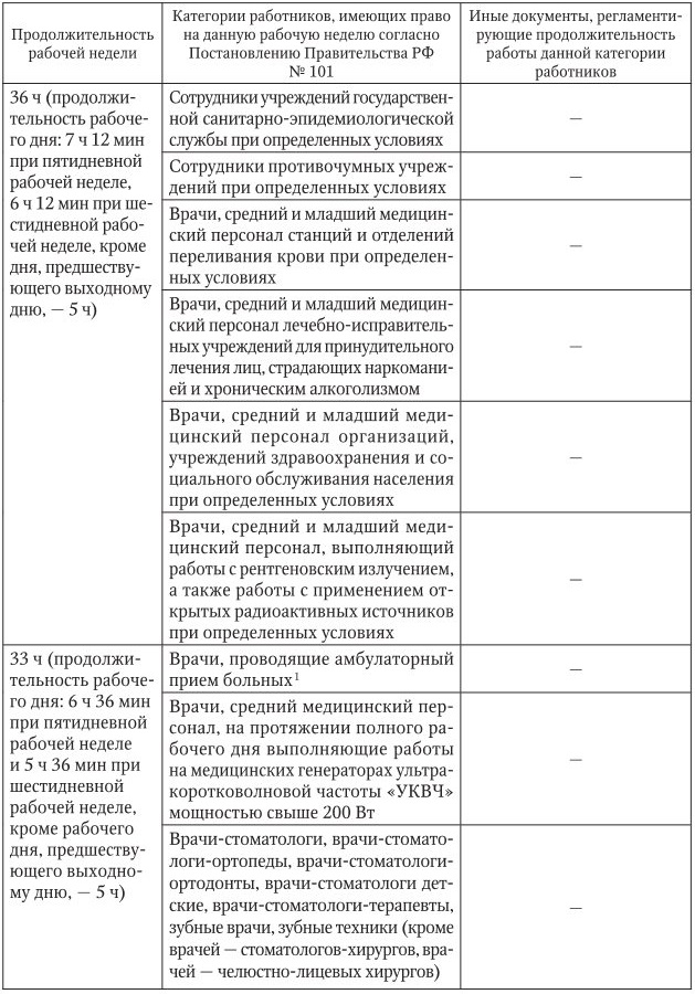 Категории сотрудников медицинских организаций с сокращенной продолжительностью рабочего времени