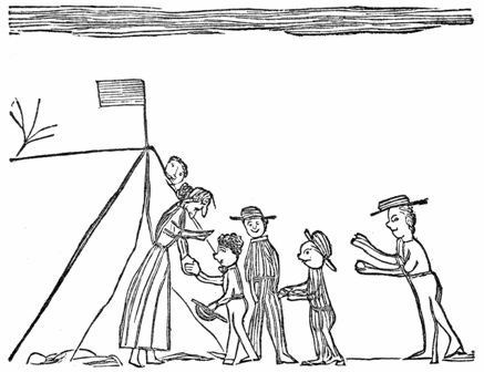 Dorry said, "Poh, that wasn't much of a pick!" Says he, "Now I'll tell you a huckleberry story that's worth something." Then all the boys began to hit elbows, for they knew Dorry would make up some funny thing. Says he: "I went a huckleberrying once to Wakonok Swamp, and I carried a fourteen-quart tin pail, and a great covered basket, besides a good many quart and pint things. You'd better believe they hung thick in that swamp! I found a thick spot, and I slung my fourteen-quart tin pail round my waist, and picked with both hands, and ate off the bushes with my mouth all the while. I got all my things full without stirring two yards from the spot, and then I didn't know what to do. But I'll tell you what I did. I took off my jacket, and cut my fishing-line, and tied up the bottom ends of my jacket sleeves and picked them both full. And then I didn't know what to do next. But I'll tell you what I did. I took off my overalls, and tied up the bottoms of their legs, and picked them so full you wouldn't know but there was a boy standing up in 'em!" Then the boys all clapped.