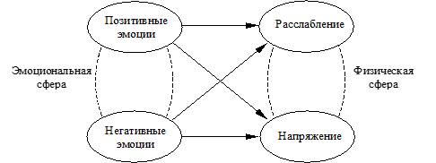 Стрелка между негативными эмоциями и напряжением физической сферы характеризует вышеописанный пример. «Негативное напряжение» – это состояние крайнего возбуждения, которое характеризуется затратой большого количества духовной и физической энергии. Долго в данном состоянии человек находиться не может, просто уже через некоторое время он обессилится, энергия его иссякнет, придет момент, когда ему будет необходимо расслабиться. Но при сохранении негативного возбуждения это сделать невозможно. Поэтому нужно сказать, что длительность «негативного напряжения» не может быть долгой. Чем выше степень негативного перенапряжения, тем быстрее человек устает, скорее расходует имеющийся запас энергии. Теперь, когда необходимо человеку расслабиться это становится возможным сделать, в основном, при наличии позитивных эмоций. Данное состояние позволяет восстановить силы, энергию. Итак, следующее состояние есть «позитивное расслабление». На схеме на рисунке №13 это состояние отмечено прямой стрелкой между позитивными эмоциями и, соответствующим им, расслаблением физического тела. Нужно сказать, что «позитивное расслабление» закодировано программой кодов как цель биологического существования. Человек абсолютно совершенной генерирующей системой сориентирован на достижение «позитивного расслабления». Данное состояние характеризуется внутренним положительным эмоциональным наполнением и расслабленностью физической субстанции. Человек сам по собственной воле выходить из данного состояния не хочет, оно для него приятно, и даже можно сказать, является смыслом примитивной жизни.