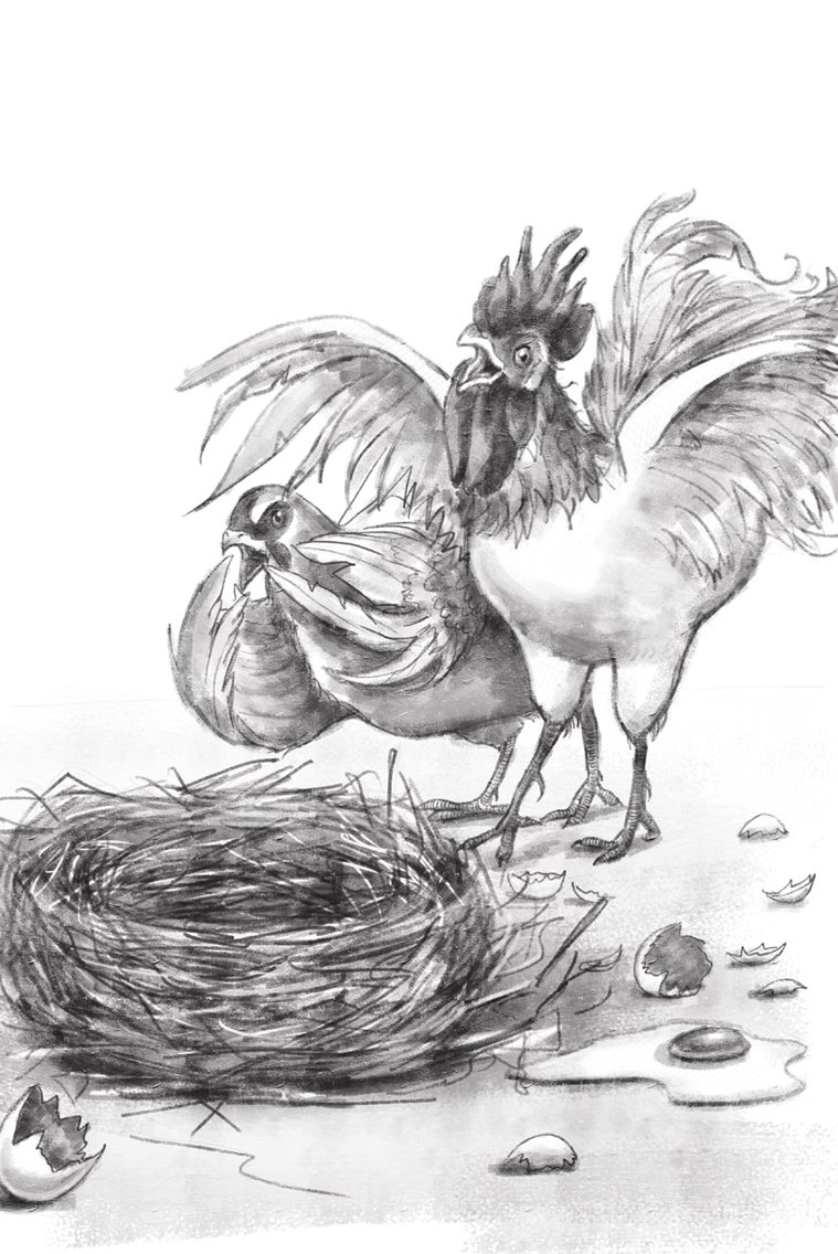 Şələquyruq və Qırt-qırt xanım şəhərdən qayıdıb gəldilər, yuvalarını dağılmış və yumurtalarını oğurlanmış gördükdə Qırt-qırt xanım ağlar səslə qışqırıb dedi:
