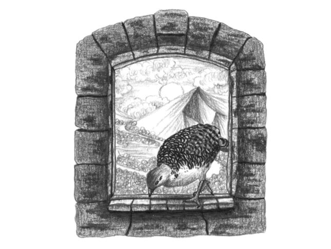 Kara, her gün bir umutla küçücük pencereye yaklaşıyor, hiçbir zaman göremediği o dağın zirvesini görmeyi umut ediyordu. Ama önceki günlerde olduğu gibi görüp görebildiği, zikzaklar çizerek uzayan bir yol ve onun iki tarafındaki meyve ağaçlarıyla nöbet tutan beş altı insandı.