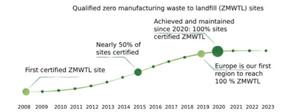 The company is also a strong supporter of Extended Producer Responsibility (EPR) systems, which accelerate the transition to a CE and enhance waste recycling processes. Since 2020, P&G has consistently met its target of sending zero manufacturing waste to landfills (fig.7).