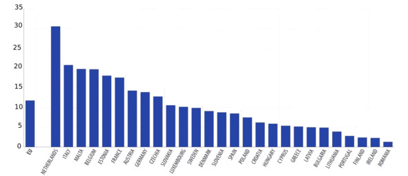 Figure 8. Circular material use rate in the EU, 2023, % [30]