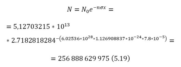 Это число всех частиц, прошедших сквозь пластину и не вошедших в реакцию, а для того, чтобы вычислить те, которые вошли в реакцию, достаточно определить разность в (20), а затем уже вычислить из них заряд, учитывая, что альфа-частица несёт 2 элементарных заряда (21) и силу тока (22).