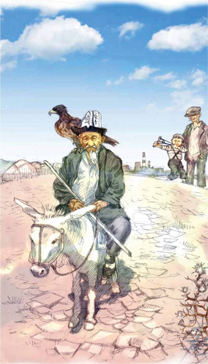 Однажды он увидел киргиза верхом на осле, с натренированным для охоты орлом на плече. Мой приятель дал мне рогатку и пообещал хорошую плату, если я из нее попаду в орла. Я прицелился, выпустил камень, но попал не в орла, а в киргиза. Мы быстро убежали, и за мои заслуги этот приятель дал мне огромного малосоленого лосося, за которого на базаре можно было, наверное, получить десяток шуб.