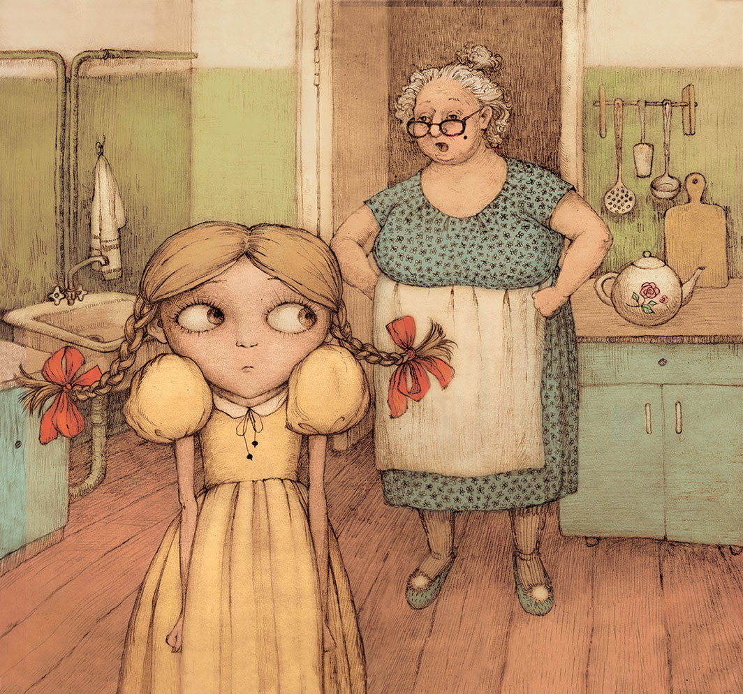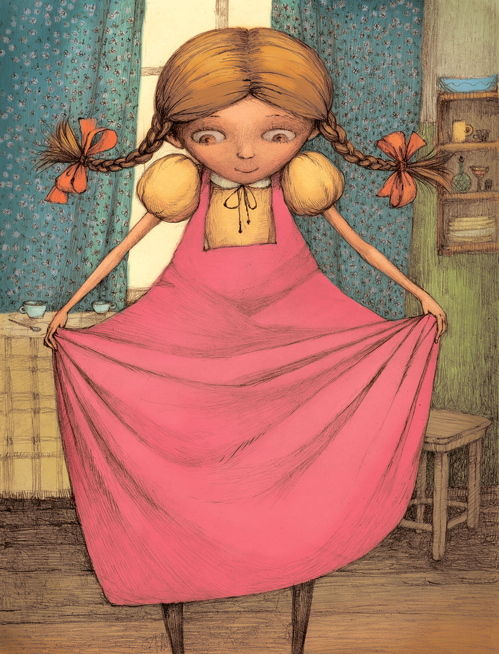– Это мой фартук, надень его, ничего страшного, что он тебе велик. Заляпаешь свое красивое платье – мама потом по головке не погладит, верно?