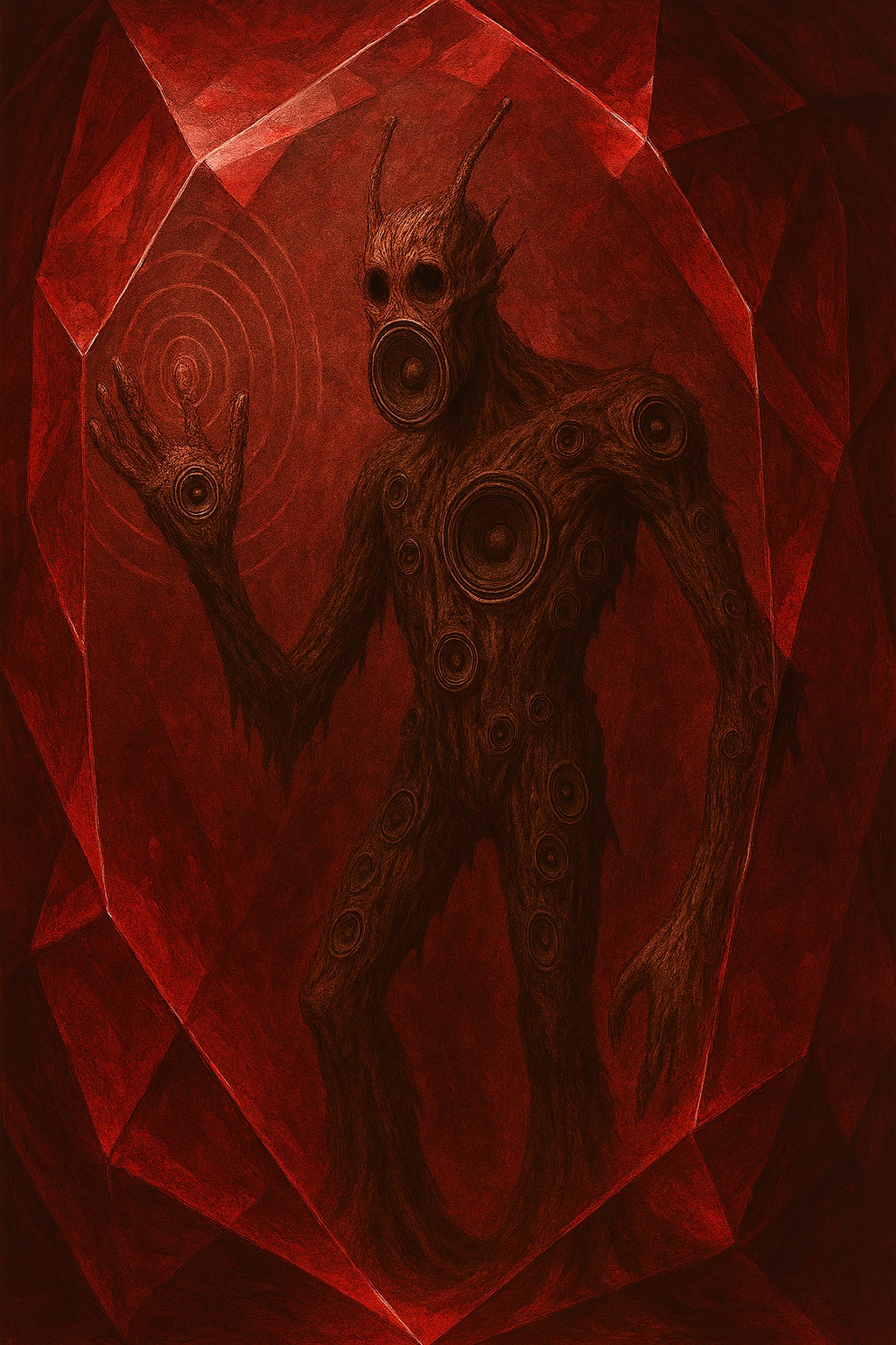 Радио исчезло из рук старика, а за его спиной мгновенно материализовалось гигантское тощее существо, отдалённо напоминающее человека. Даже учитывая высокий рост самого Имаймаши, существо позади него было почти на пол головы выше. Оно напоминало сухое дерево, а все его тело было покрыто небольшими динамиками, как у колонки или радиоприёмника нулевых годов. Так же, как и человек, существо имело руки, ноги и голову. Из головы этого создания торчали две антенны, у него были пустые чёрные глаза, но на месте, где должен был располагаться рот, находился большой динамик. Вытянув руку через плечо старика, существо направило динамик, расположенный в его ладони на студентку, а затем буквально выстрелила в неё невидимой звуковой волной. Куми почувствовала сильный удар в грудь из-за чего упала на пол. Старик вновь рассмеялся, а девушка резко подскочила на ноги и бросилась бежать прочь, прикрывая уши руками, ведь громкая музыка не прекращала играть, доносясь из всех динамиков на теле существа. Добравшись до ближайшей двери, Куми спряталась внутри. Она оказалась в подсобном помещении, где хранился уборочный инвентарь.