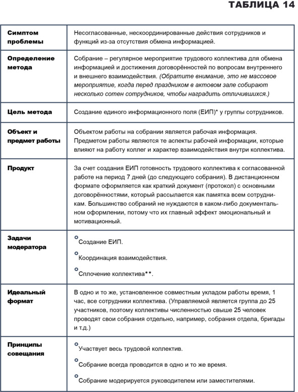 Собрание – это формат групповой работы, предназначенный для создания единого информационного поля у сотрудников подразделения, а также решения совместных вопросов.