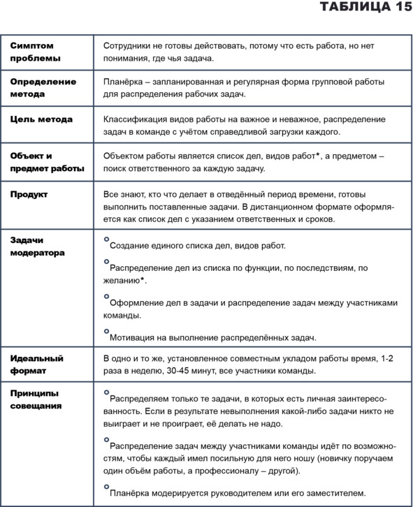 Планёрка – запланированная регулярная форма групповой работы для распределения рабочих задач.