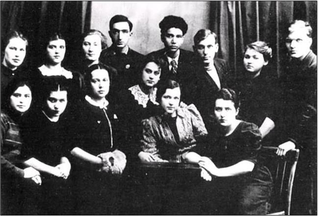 Пятая группа филологического факультета ЛГУ. Стоят: вторая слева – Людмила Крутикова, четвертый – Леонид Сокольский, пятый – Семен Рогинский, шестой – Яков Либерман. Сидит вторая справа – Тамара Голованова