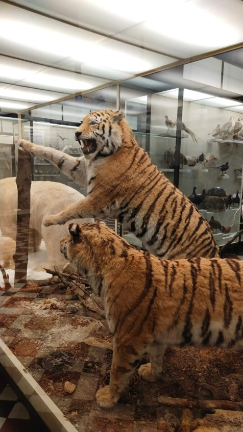 Музей как бы разделен на три части. Есть нижний зал, где самое большое количество животных, верхний зал с птицами и костный зал со скелетами.
