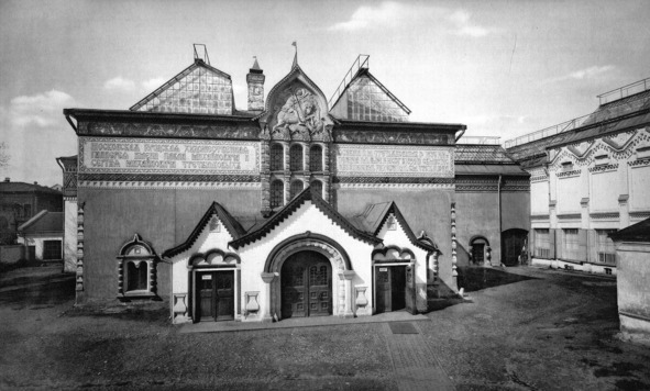 Фасад здания Третьяковской галереи выполнен в традициях русского теремного зодчества.