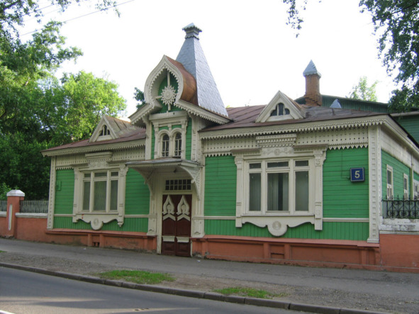 Дом находится в пер. Огородная Слобода, 9. Он примечателен своим декором: фасад украшен резными деревянными элементами, в том числе подзорами и пропиленными кронштейнами. В 2016 году это здание отнесли к объектам культурного наследия регионального значения.
