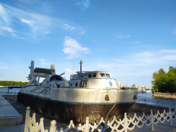 Десантный штурмовой катер «Скат» на воздушной подушке в парке Северное Тушино под открытым небом