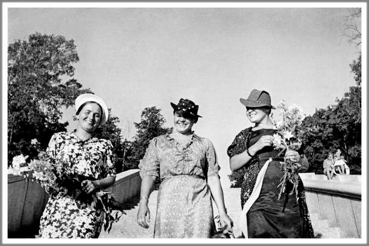 Героинь перелета редко видели в платьях. Самая стройная слева – Гризодубова, в центре Осипенко и полная Раскова