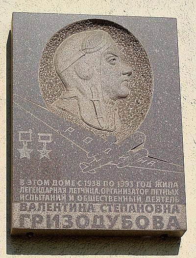 Памятная доска на доме Академии Жуковского, где жила Гризодубова