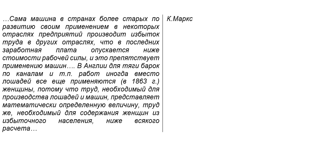 Если в промышленных корпорациях не ведется модернизация производства в ногу со временем, то это явный признак того, что (псевдо)капиталисту значительно дешевле эксплуатировать живую рабочую силу, нежели современные машины, а все потому, что заработная плата наемных рабочих настолько мала, что выгоднее продолжать ее использовать, нежели одномоментно затрачивать капитальные средства на модернизацию. Хотя в соответствии с классикой капиталистического промышленного развития использование машин должно быть выгоднее, т.к. они более производительные в сравнении с человеческим трудом. Но во всем этом есть своя логика и прямая выгода (псевдо)капиталиста, если в современном обществе происходят алогичные явления, присущие прошлому поколению общества, на самом деле во всем происходящем имеется рациональное зерно (недо)капиталиста.