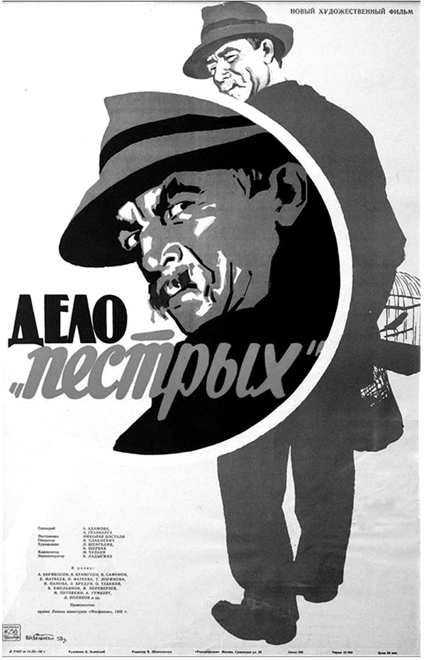 В кинофильме «Дело «пёстрых» обитали стиляги. В соответствии с фельетонными установками тех лет в среде молодых циников, которые «из-за моды сбились с ног», один шаг «от саксофона до ножа». В повести Адамова эта тема преподносится куда сдержаннее. Какое имя должен носить молодой повеса, богемный актёр, курящий сигареты «с золотым обрезом», с презрением смотрящий на совдействительность и её защитников-милиционеров? Конечно, Арнольд. А положительный герой? Сергей Коршунов. Орёл, коршун, сокол…