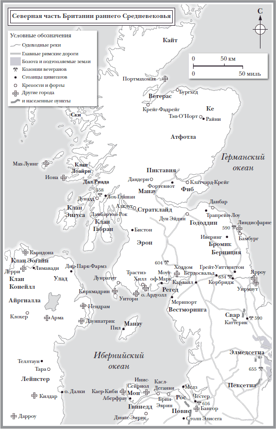 От тех двух веков истории Британии, что последовали за начавшимся около 400 года кризисом, предварявшим крушение Западной Римской империи, остались лишь крошечные фрагменты. Невозможно составить из них ясную последовательность, чтобы рассказать историю тех бурных, загадочных времен – историю того, как в Британии возникли первые королевства раннего Средневековья. И тем не менее гора фрагментов, собранных исследователями за последние десятилетия, поражает своими размерами. И даже если исходный сюжет восстановить не удается, стало возможно увидеть сцену, на которой игралась утерянная драма, и населить ее персонажами карнавала, изображенного неким изобретательным наблюдателем человеческой природы с богатой фантазией, кем-то вроде Брейгеля или Лаури.