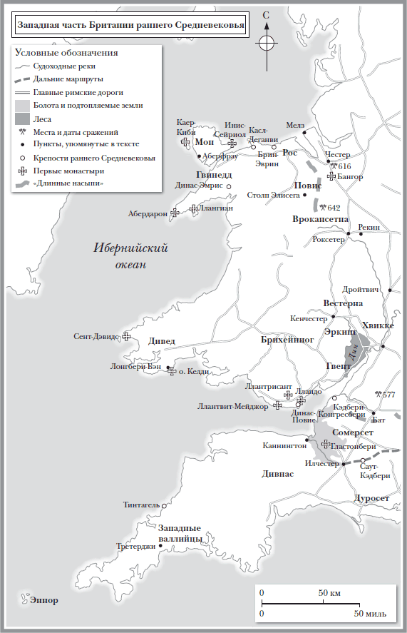 Названия, связанные с географическим положением и принадлежностью, возникшие после ухода римлян, – такие как Meanware в долине реки Меон в Гемпшире, Hroðingas в Эссексе или Magonsœte в долине реки Уай, – появились не раньше VII века[17]. В то время потомки жителей меловых холмов, видимо, уже принадлежали к Wilsœte[18], обитателям долины реки Уайли, чье именование (через название городка Уилтон) унаследовало графство Уилтшир. В анналы истории раннего Средневековья они попали в 552 году, когда после предполагаемой победы военного вождя Кюнрика у Сеаробурга (Searoburh)[19] англосаксы подчинили себе Солсберийскую равнину[20]. Позднее жители этих мест получили сомнительное преимущество считаться подданными разросшегося королевства Уэссекс.
