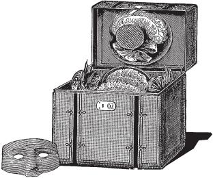 Я осторожно, едва ли не с опаской заглянула в чемодан. В нём лежали маски, парики, забавные вставные челюсти, накладные носы и бороды, кисточки, баночки с клеем, а также целый набор разных усов, косы, пудра и губная помада.