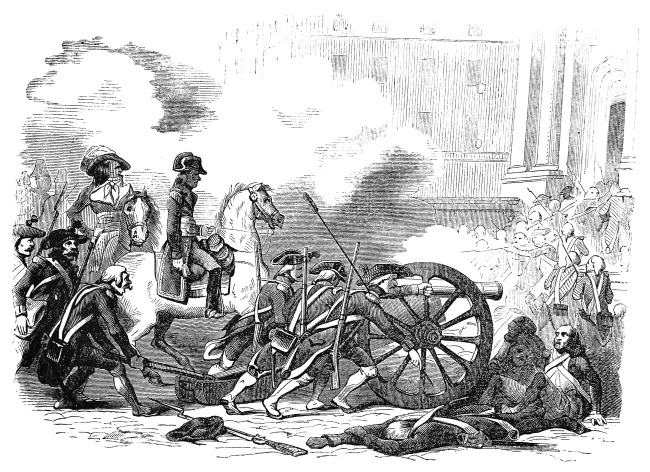 Все вместе они двигаются плотной колонной от Нового моста к Королевскому, вдоль набережной Вольтера. Бонапарт, присутствуя везде, где того требует опасность, уже на месте. Он расставляет несколько батарей на параллельной набережной Тюильри, выдвигает пушки у входа на Королевский мост и нацеливает их на набережную, по которой идут мятежники. Приняв эти меры, Бонапарт дает секционистам подойти близко и только тогда приказывает стрелять. Картечь сыплется с моста прямо на них и громит сбоку, сея смерть и ужас в их рядах. Молодой Лафон с геройской храбростью собирает около себя наиболее твердых из своих людей и опять идет к мосту, намереваясь взять орудия с бою. Удвоенный огонь разгоняет его колонну; тщетно пытается он еще раз вести ее в атаку: колонна разбегается от выстрелов искусно управляемой артиллерии.