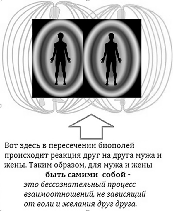 Реакции друг на друга мужа и жены в семье происходят в месте пересечения биополей обоих.