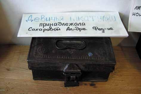 Девичья шкатулка (начало ХХ в.), принадлежавшая одной из жительниц с. Дорогорское. Из коллекции музея села Дорогорское. Фото В. Беркутовой. Июль 2007 г. Село Дорогорское Мезенского района Архангельской области