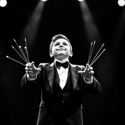 Из-за кулис появился мальчик лет пяти в черном строгом костюме. Видимо, поэтому в нем было что-то невзрослое. Взгляд, походка, мимика. Его сдержанность пугала взрослых зрителей и одновременно интриговала, привлекала, завораживала.