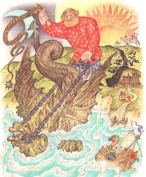 – Выходи лучше в чистое поле, а то и берлогу размечу! – сказал Кожемяка и стал уже двери ломать.