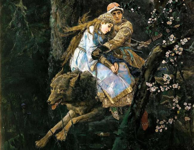 – Садись, Иван-царевич, на меня, на серого волка, а прекрасная королевна пусть едет на коне златогривом.