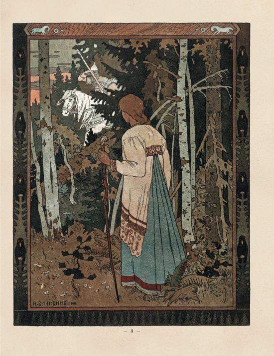 Василиса собралась, положила куколку свою в карман и, перекрестившись, пошла в дремучий лес.