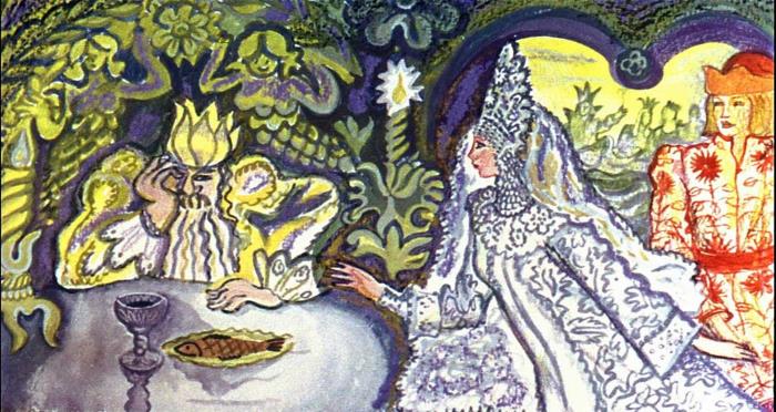 Пошла Василиса и явилась пред очи царские. Как увидел царь Василису Прекрасную, так и влюбился в неё без памяти.