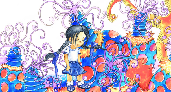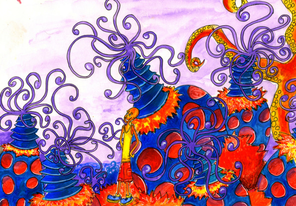 Так Милена и оказалась на планете. Не сразу она поняла, что находится не в своём королевстве, а внутри большого дерева с оранжевой корой и синими листочками в виде звёздочек.