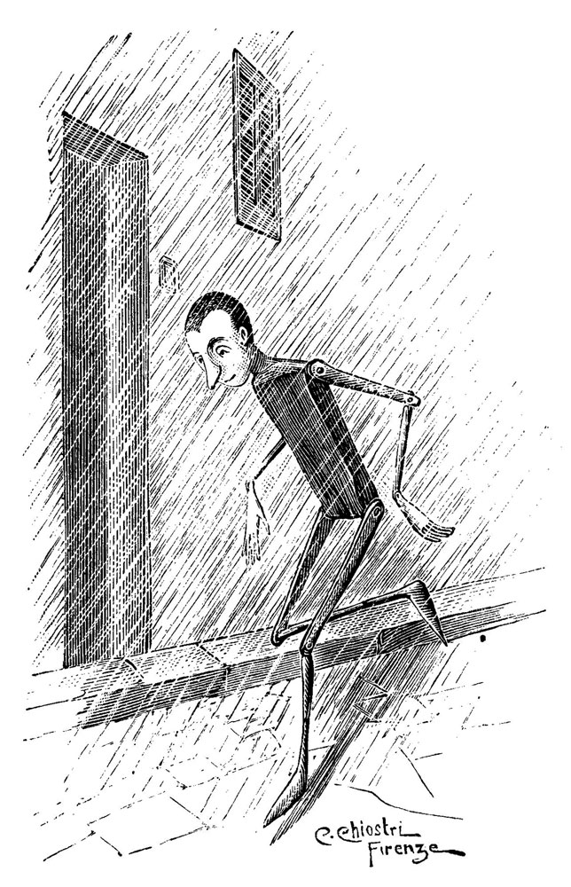 Помимо заголовка, который читатель обнаружит на обложке и титульном листе этой книги, у нее есть оригинальный (во всех смыслах) подзаголовок, и он заслуживает небольшого пояснения. В нем упоминается, что «приключения деревянной куклы (или марионетки, или деревянного паяца, о чем я скажу далее) были «дважды прокомментированы и трижды проиллюстрированы». Начнем с последнего: книга о Пиноккио переиздавалась не один раз, однако в нашем случае имеются в виду три конкретных издания. В 1883 году во Флоренции Феличе Паджи выпустил книгу Коллоди с иллюстрациями Энрико Мадзанти – единственного художника, который создал свои работы еще при жизни писателя, умершего в 1890 году. В 1901 году «Пиноккио» вышел в издательстве Роберто Бемпорада, также во Флоренции, с гравюрами Карло Кьостри – именно их чаще всего можно встретить в русскоязычных изданиях, наряду с работами Мадзанти. Третий художник, о котором упоминает Агамбен, – Аттилио Муссино – создал для Бемпорада цветные иллюстрации, их читатель также сможет увидеть на страницах нашей книги.