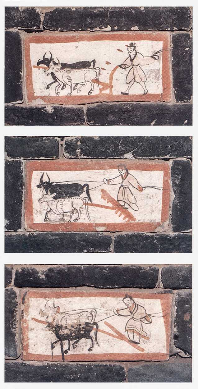 Настенная роспись из склепа в провинции Ганьсу. Процессы вспашки,