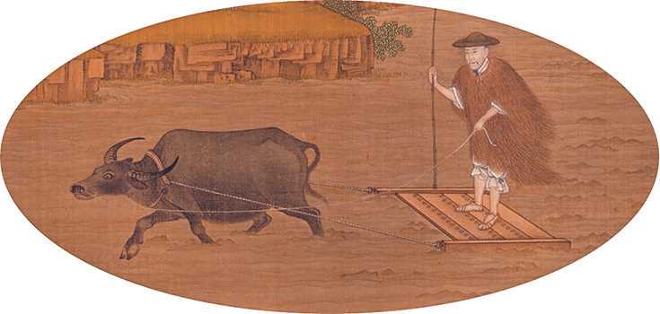 В I–VI вв., с конца династии Восточная Хань до периода Южных и северных династий51, на севере страны происходили частые войны, а на юге было относительно спокойно, что позволило населению южных провинций внедрять передовые методы ведения сельского хозяйства, такие как железные плуги и вспашка волами, вследствие чего сельское хозяйство на правобережье Янцзы непрерывно развивалось. В конце династии Хань появился гибкий и облегчённый плуг с изогнутыми оглоблями, который был удобен для ведения сельского хозяйства в горной местности. Во времена династии Тан крестьяне районов к югу от Янцзы создали плуг для рисовых полей, оглобли у которого были более подвижными, что улучшило манёвренность.