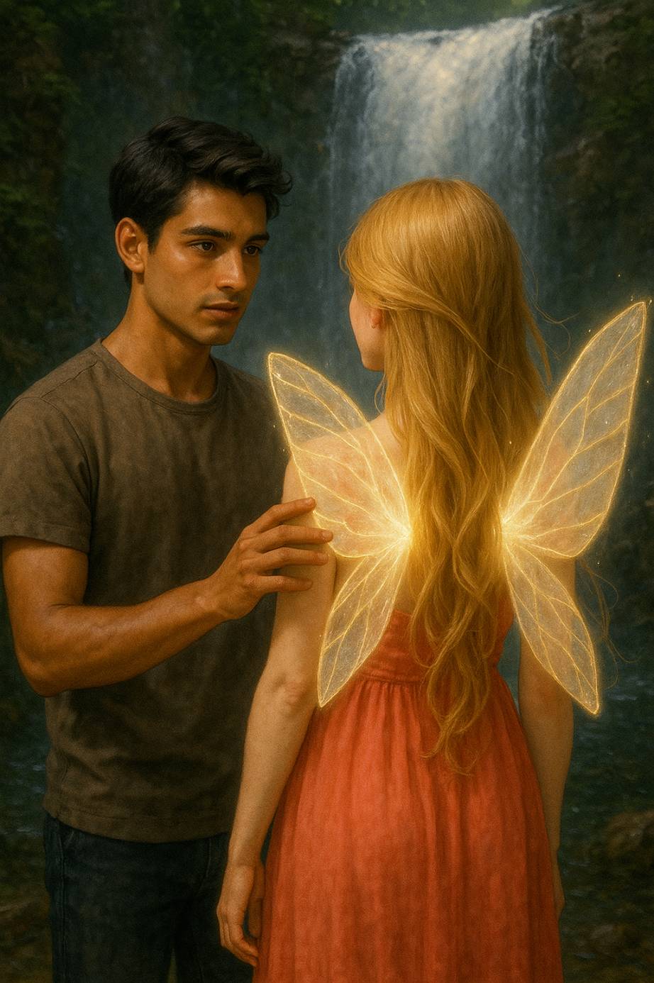 Придерживая на груди платье, Лола опустила голову и закрыла глаза. Вдруг за её спиной появились два полупрозрачных крыла с нежным жемчужным блеском. Девушка робко взглянула на Али, тревожно следя за его реакцией.